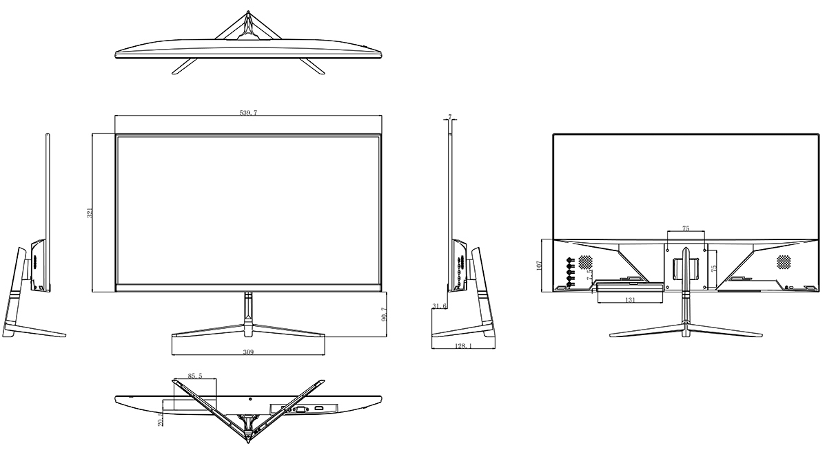 539.7mm(W)×321mm(H)×7mm(D)不含底座 |