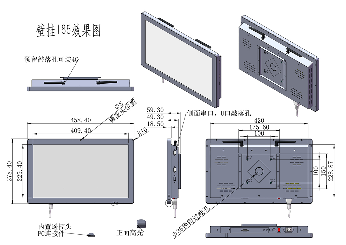 型号/尺寸:18.5'' TFT-LCD硬件规格